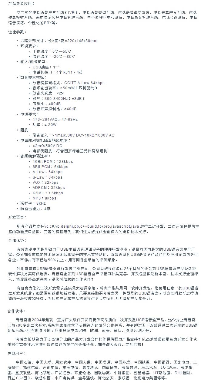 您现在的位置:首页 >> 电话录音>录音盒>奇普嘉>USB电话语音盒>四路USB电话语音盒>